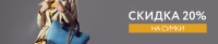 Условия акции: на ассортимент женских и мужских сумок, не участвующих в других акциях и спецпредложениях, предоставляется скидка в размере 20% от стоимости товара. Скидка по акции не суммируется со скидкой по дисконтной карте покупателя. На товары, приобретенные по акции, предоставляется рассрочка.