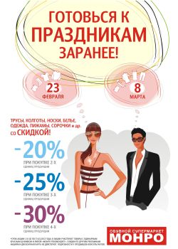 Компания Монро рада предложить своим покупателям новую акцию "Готовься к праздникам заранее!".