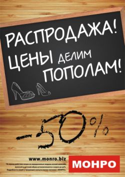 С 20 июня во всех магазинах обувной сети «МОНРО» действует скидка 50% на всю летнюю коллекцию женской, мужской и детской обуви.