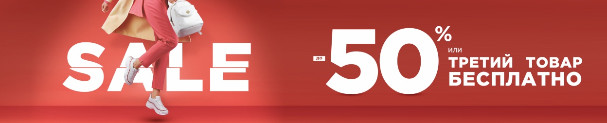 Условия акции "Третий товар бесплатно": При покупке двух товаров из ассортимента обуви и/или сумок, третий, наименьший по стоимости товар предоставляется бесплатно. Скидка, равная 100% стоимости третьего товара, расписывается в чеке путём пропорционального уменьшения стоимости каждого приобретаемого товара. В акции не участвуют товары с уже установленной по другим спецпредложениям скидкой равной или превышающей 35%. Скидка по акции не суммируется со скидкой по дисконтной карте. На товары, приобретенные по акции, может быть предоставлена рассрочка.