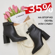 Условия акции: с 22.02.2025 г. и до уведомления об отмене акции, на второй товар в чеке из ассортимента обуви и сумок с меньшей стоимостью применяется скидка -35%. Акция не суммируется со скидкой по программе лояльности и применением бонусов.