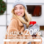 Скидка 20% на шапки, снуды и варежки