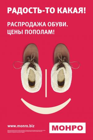 С 8 апреля 2013г. во всех магазинах обувной сети «Монро» действует акция «Легкие цены на обувь из кожи»!