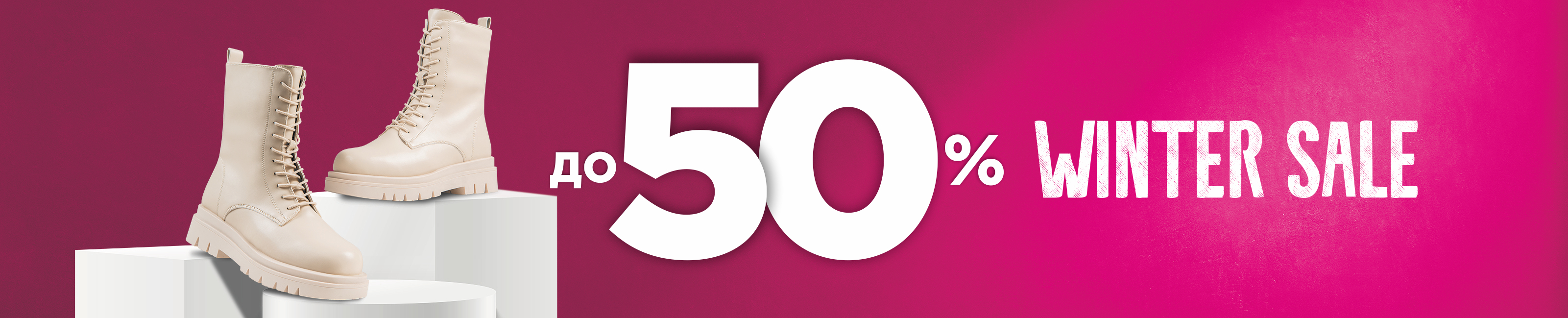 Условия акции: на ряд моделей из ассортимента обуви действуют дифференцированные скидки до -50%. Скидка по акции не суммируется со скидкой по карте покупателя. Товары по акции могут быть предоставлены в рассрочку. Подробности у продавцов-консультантов.