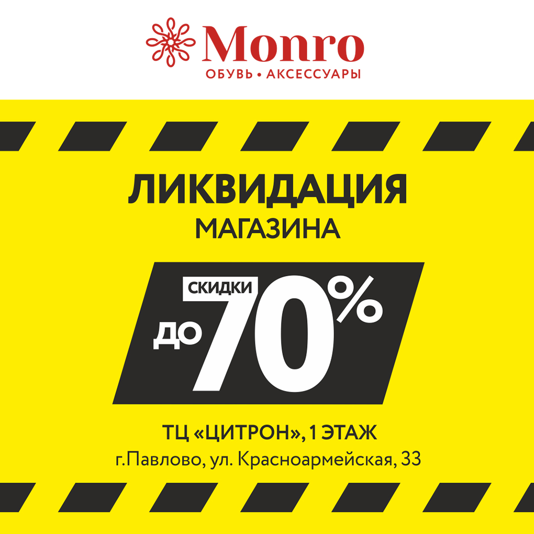 В магазине МОНРО, расположенном на 1-м этаже в ТЦ "Цитрон" по адресу: ул. Красноармейская, 33 стартовала ликвидация. Хиты трендовой весенней обуви теперь можно приобрести со скидками до 70%. Дополнить их аксессуарами удастся за полцены, так как на аксессуары также установлены сниженные до 50% цены. Не упустите шанс создать неповторимый гардероб на каждый случай повседневности, сэкономив на этом. Ждём вас за приятными покупками!